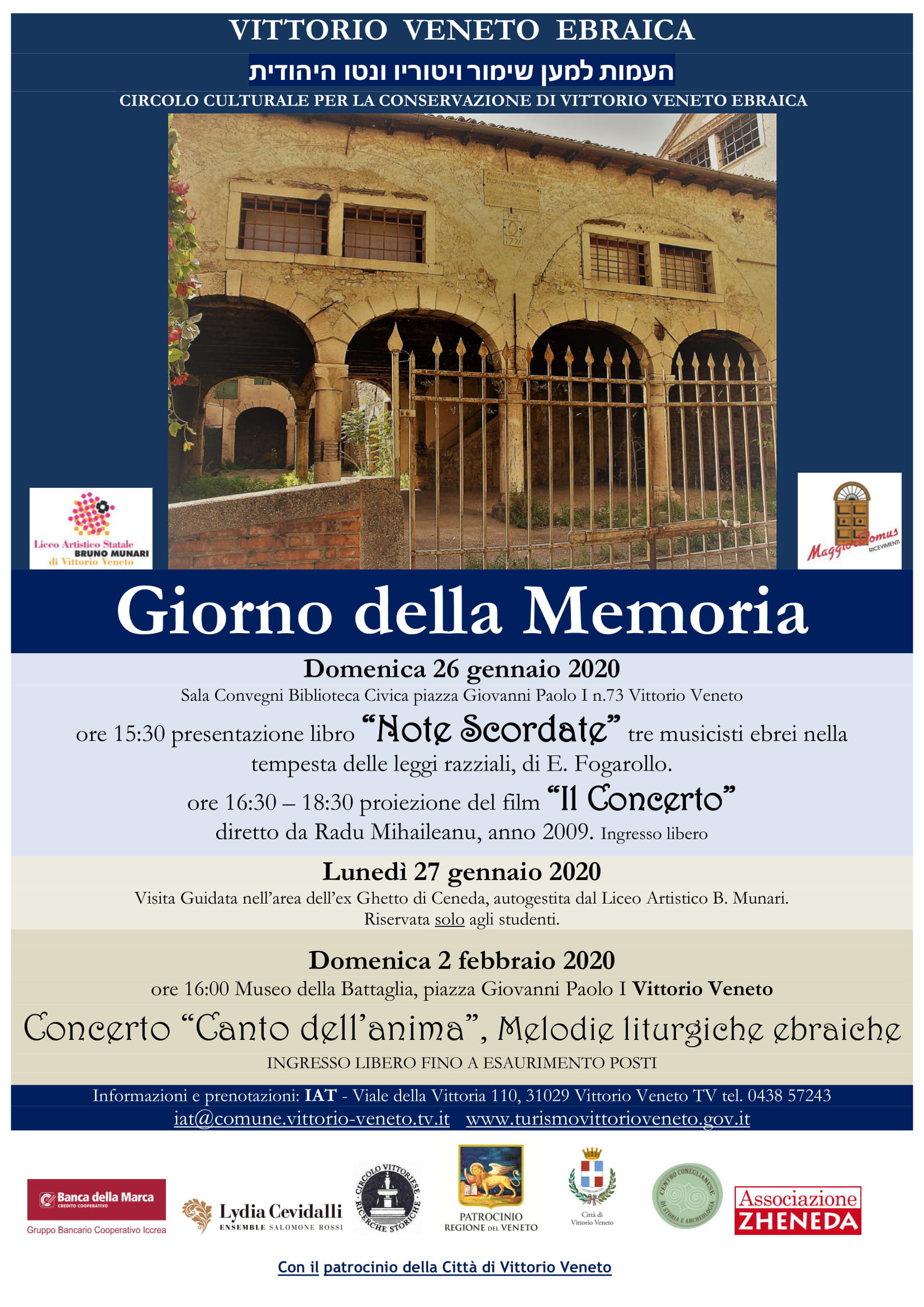 In occasione della Giornata della Memoria, il Liceo artistico Munari, in collaborazione con il Circolo Culturale per la Conservazione di Vittorio Veneto Ebraica e la dott.ssa Della Coletta Tomasi Silvia, ha organizzato una visita guidata all’Area dell’ex ghetto ebraico nella mattinata di lunedì 27 gennaio 2020.